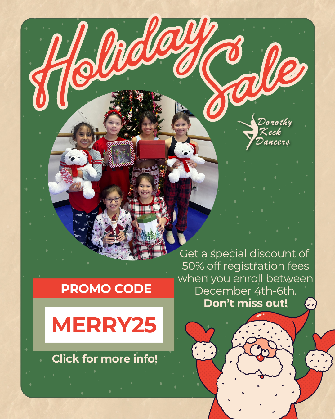 At Dorothy Keck Dancers, we are dedicated to your child’s success! Get started today with our FREE EXCLUSIVE offer! Request more information today to find out how your child can start dancing.