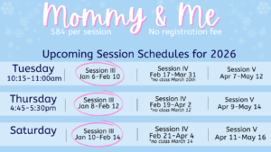 Our Mommy & Me program is the perfect way for little movers (18 months–2.5 years) to explore ballet, creative movement, and tumbling, all while spending special time with YOU!