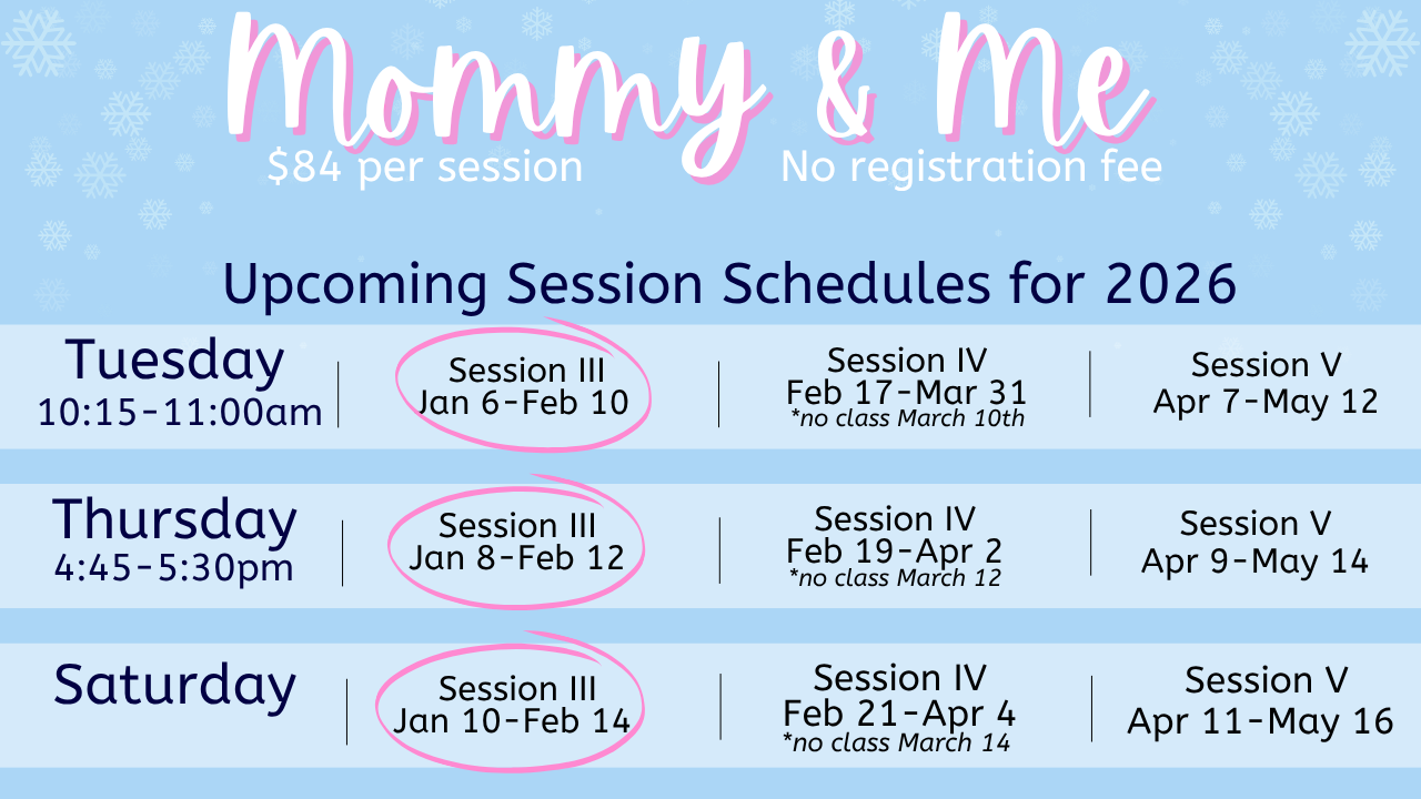 I had fun with my daughter at the mommy and me class. I was able to interact with my daughter and bond doing something we both love. She is now signed up for first steps. I get to bond with her during a class and she gets to take one by herself